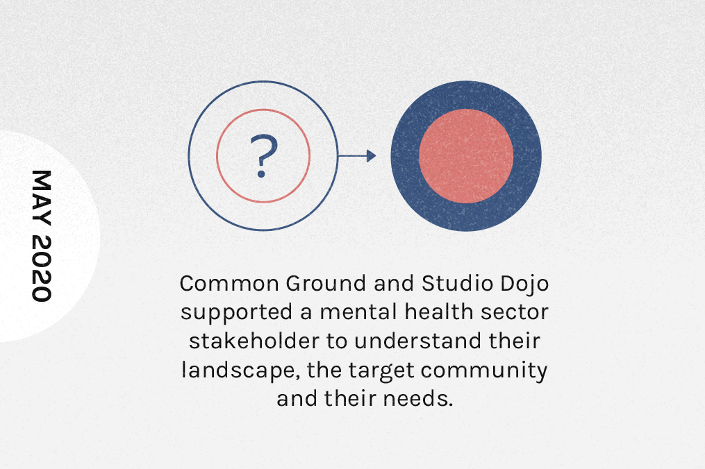 Mid 2020, Common Ground and Studio Dojo supported a mental health sector stakeholder to understand the landscape, target community and needs. Thereafter, we formed the research question: “What is the experience of a young person in Singapore discovering that they have a mental health condition?”