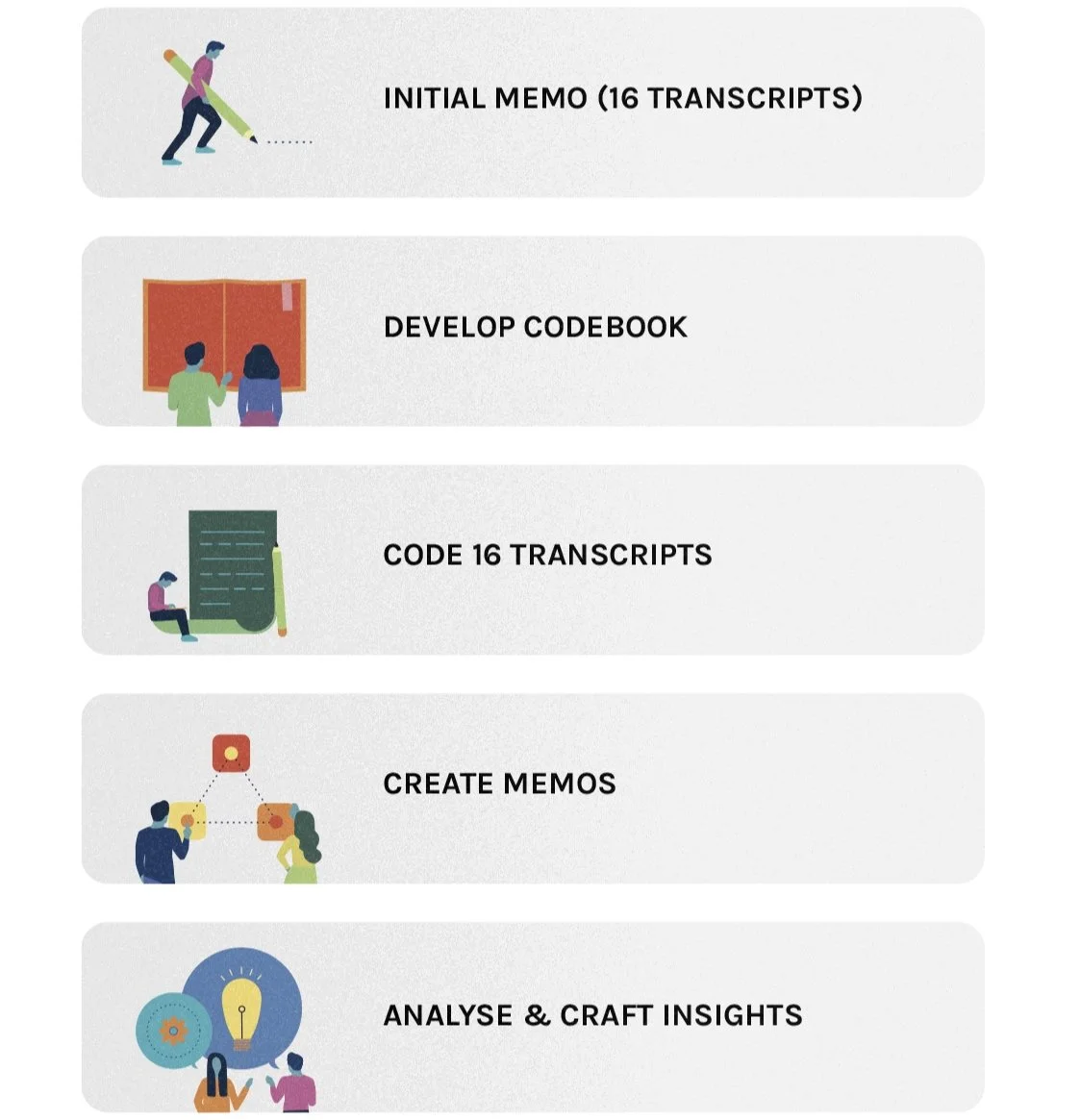 We used the Grounded Theory approach to sense-make the two sets of interview data that we had. The grounded theory approach provided an iterative, interactive way of allowing insights to naturally emerge from the data.